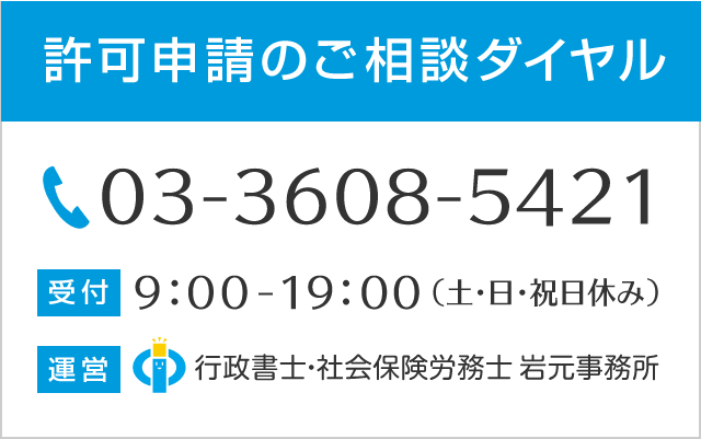 東京、千葉、埼玉、神奈川にて営業許可や会社設立に関する業務のご依頼を検討中の方は、メールでのご相談も承っております。返信には2営業日ほどお時間をいただくことがありますので、お急ぎの方はお電話にてご相談ください。
