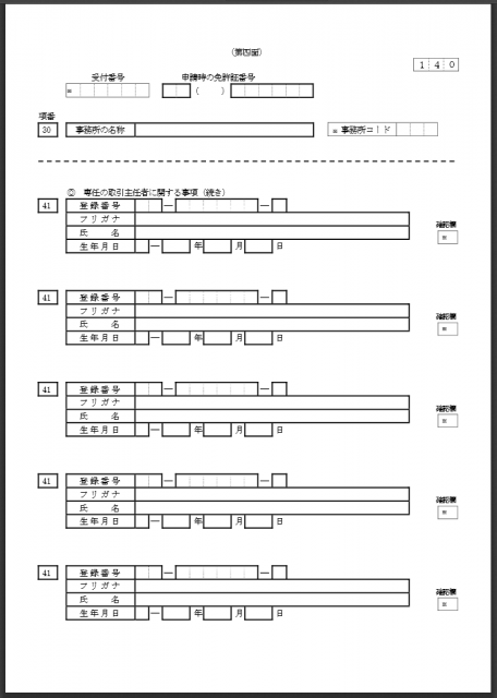 第四面は、第三面に専任の取引主任者が書ききれないときに使用する用紙です。